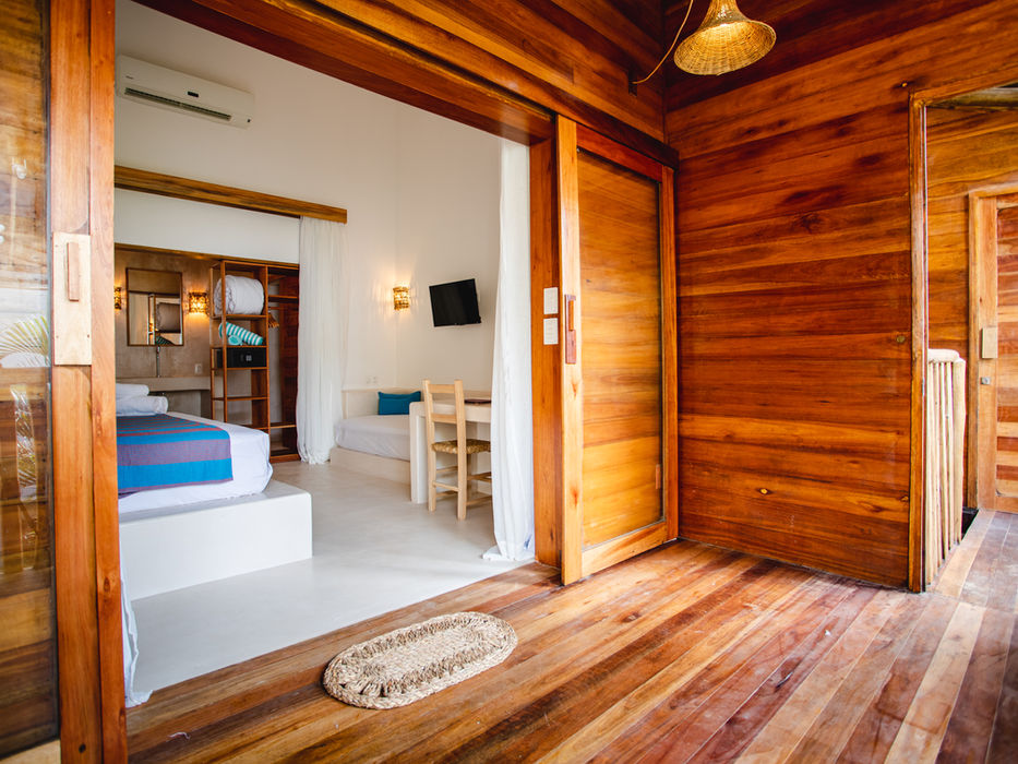 Ampla, elegante e cheia de personalidade. Uma suíte que combina design local, conforto e pé-direito generoso para uma hospedagem memorável em Jeri.